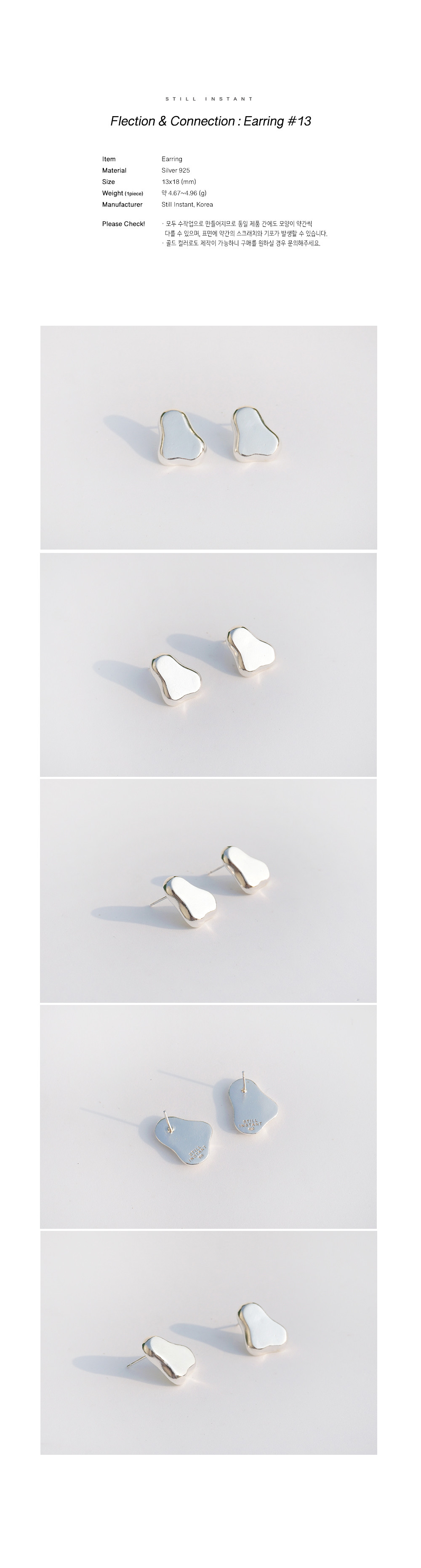 스틸 인스턴트의 주얼리는 주문 후 제작되는 핸드크래프트 제품입니다. 제작 기간은 평균 3~7일 정도 소요되며, 제품에 따라 다소 차이가 있을 수 있습니다. 정확한 일정이 궁금하신 경우, 언제든 편하게 문의해 주세요.