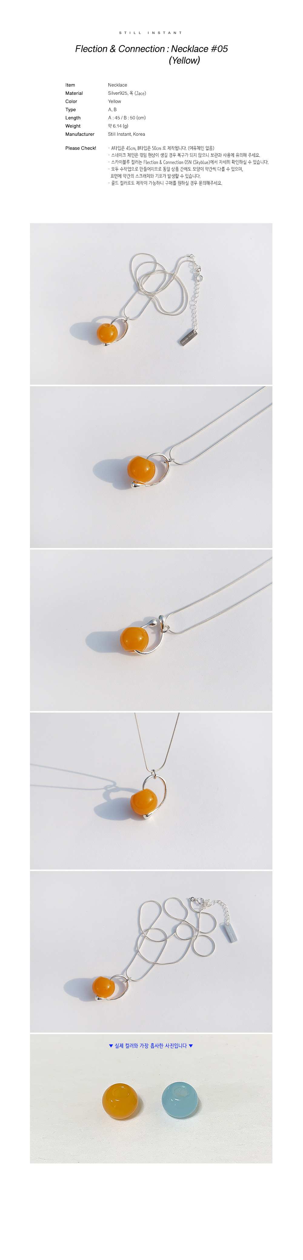 스틸 인스턴트의 주얼리는 주문 후 제작되는 핸드크래프트 제품입니다. 제작 기간은 평균 3~7일 정도 소요되며, 제품에 따라 다소 차이가 있을 수 있습니다. 정확한 일정이 궁금하신 경우, 언제든 편하게 문의해 주세요.