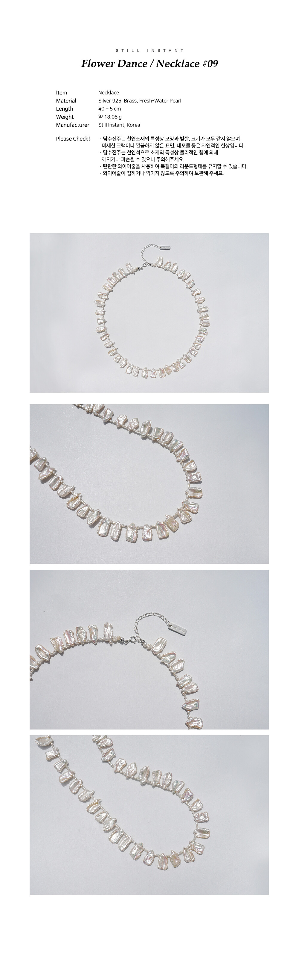 스틸 인스턴트의 주얼리는 주문 후 제작되는 핸드크래프트 제품입니다. 제작 기간은 평균 3~7일 정도 소요되며, 제품에 따라 다소 차이가 있을 수 있습니다. 정확한 일정이 궁금하신 경우, 언제든 편하게 문의해 주세요.