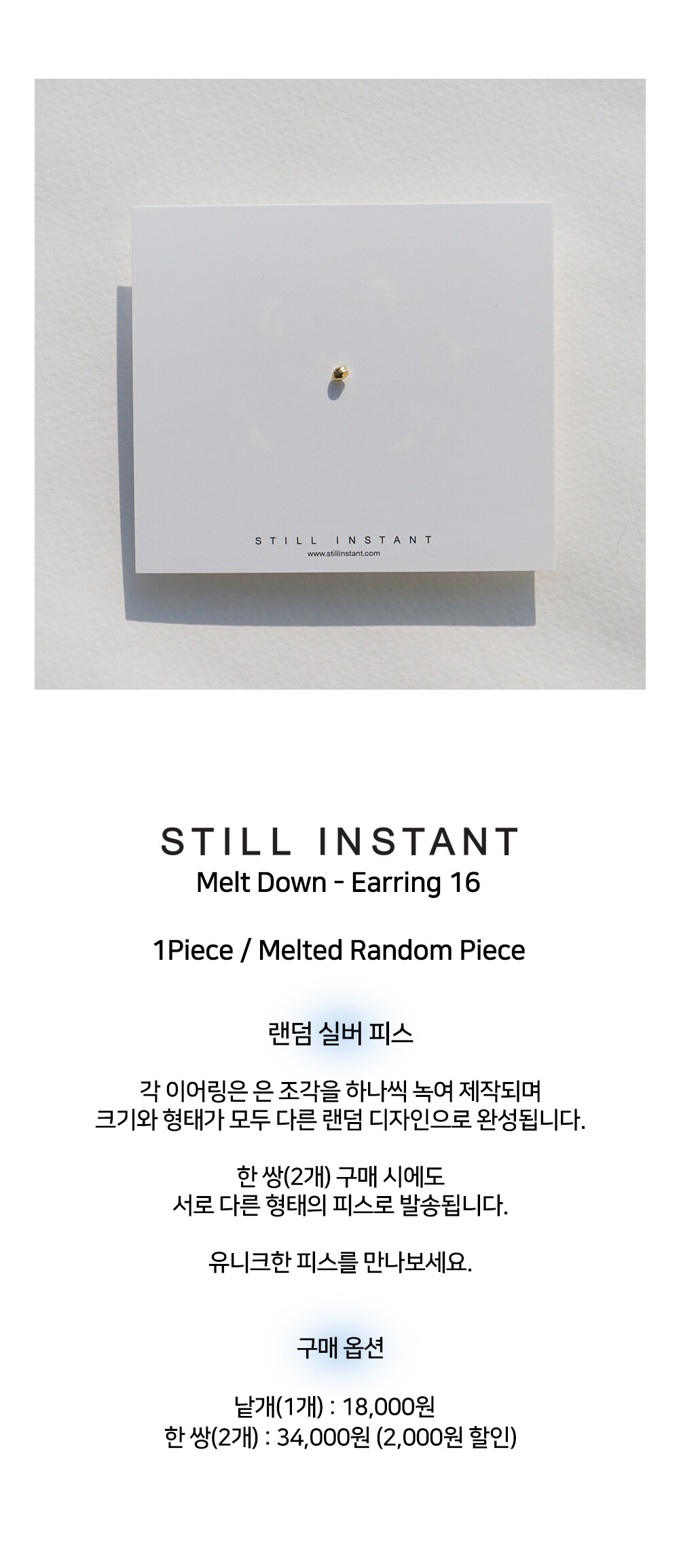 스틸 인스턴트의 주얼리는 주문 후 제작되는 핸드크래프트 제품입니다. 제작 기간은 평균 3~7일 정도 소요되며, 제품에 따라 다소 차이가 있을 수 있습니다. 정확한 일정이 궁금하신 경우, 언제든 편하게 문의해 주세요.